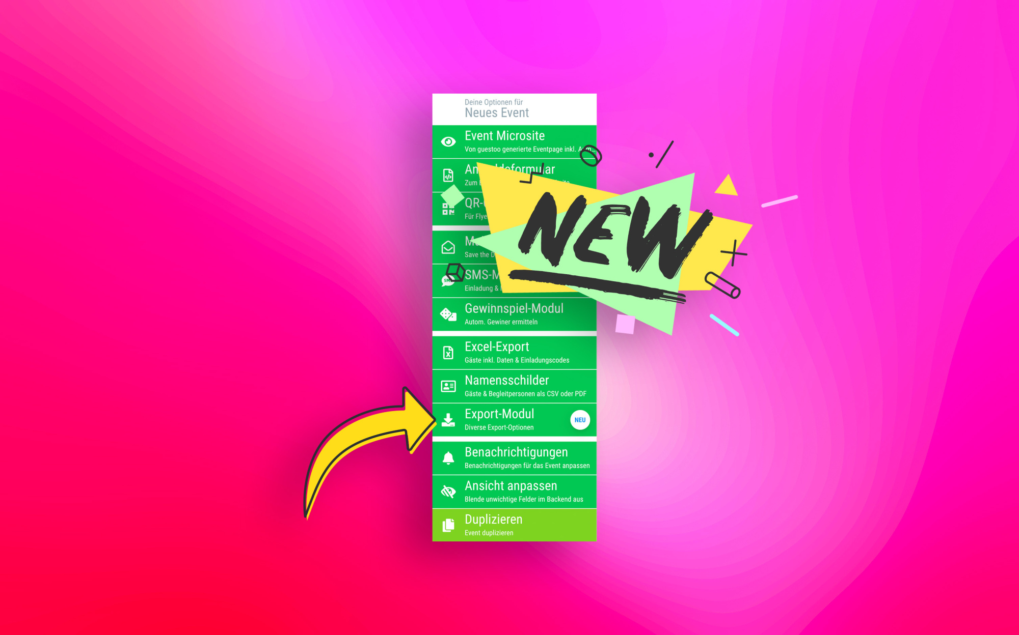 Alle Exporte stets im Blick mit unserem neuen Export-Modul: Mit diesem Update wird das Seitenmenü am Event übersichtlicher und aufgeräumter.