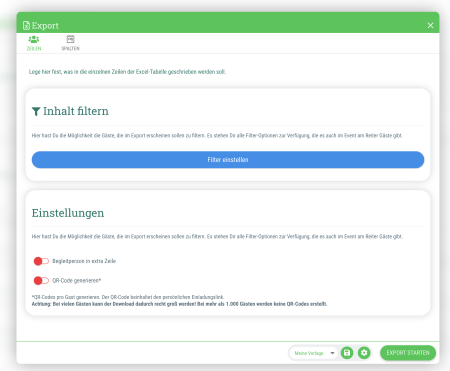 Dieses Update gibt Dir die Möglichkeit verschiedene Export-Einstellungen als Vorlage zu speichern, um z. B. Hotel-Listen oder Listen für einen Shuttle-Service schnell und einfach generieren zu können.