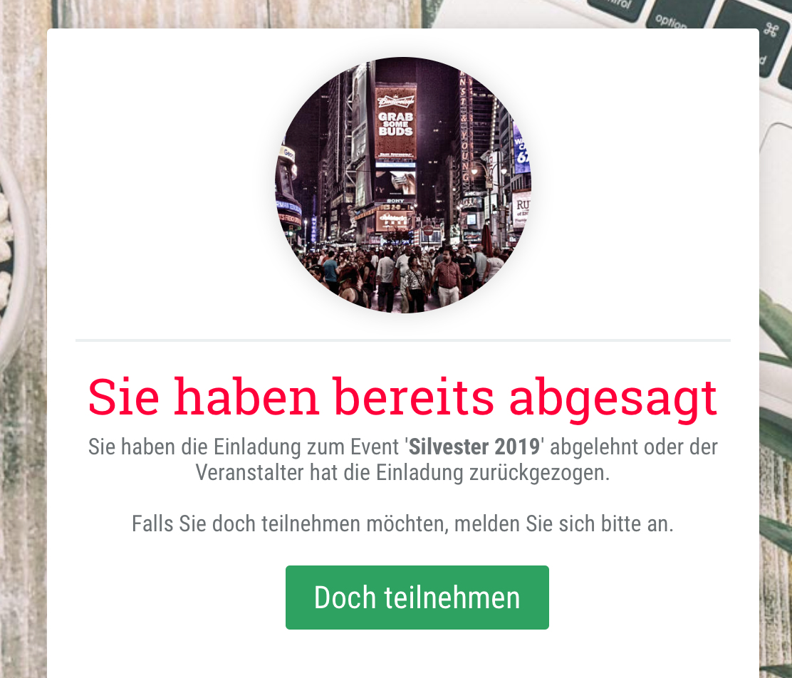 Die Absage wird nun genau so behandelt, wie eine Absage durch den Gast im System inkl. aller Optionen für Eventmanager und Gast.