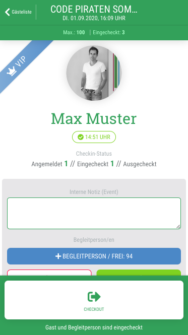 Nach der Anmeldung bekommt der Gast eine Bestätigung und ein Ticket.