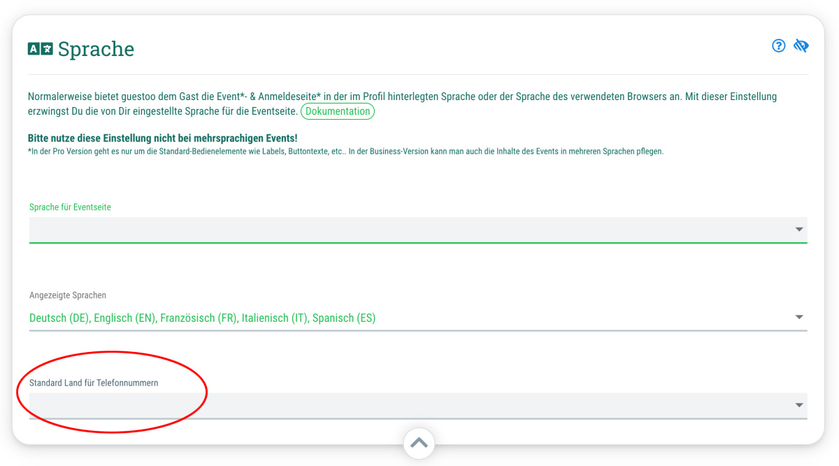 Normalerweise bietet guestoo dem Gast die Event*- & Anmeldeseite* in der im Profil hinterlegten Sprache oder der Sprache des verwendeten Browsers an. Du kannst diese Standard-Einstellung aber überschreiben und so eine von Dir gewünschte Sprache für alle Gäste erzwingen.